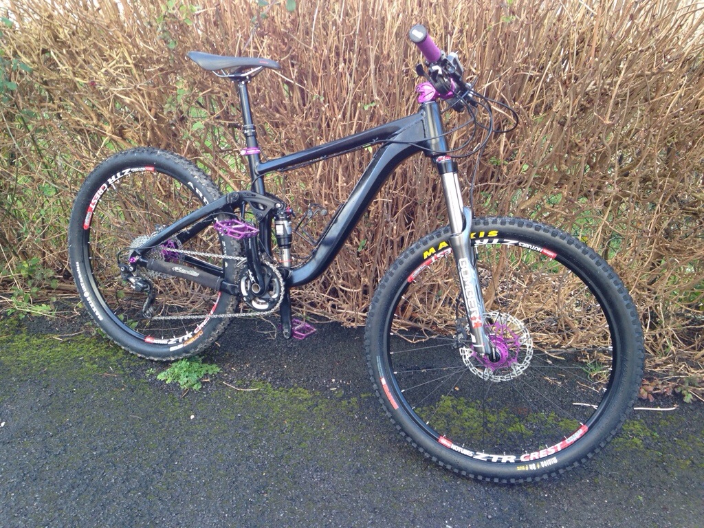 First up was a little trip to the powder-coaters, who shot blasted off the original paint job and gave Pablo (as he’s now known) a smart new black coat. Then, it was time to decide on the accent colour and for this one I knew it had to be purple. A little trip to the local bike shop and I learnt that Hope had brought back their purple range for 2014 – what a stroke of luck! So in went my order – wheels, stem, seat post clamp, rear quick release – all purple please!